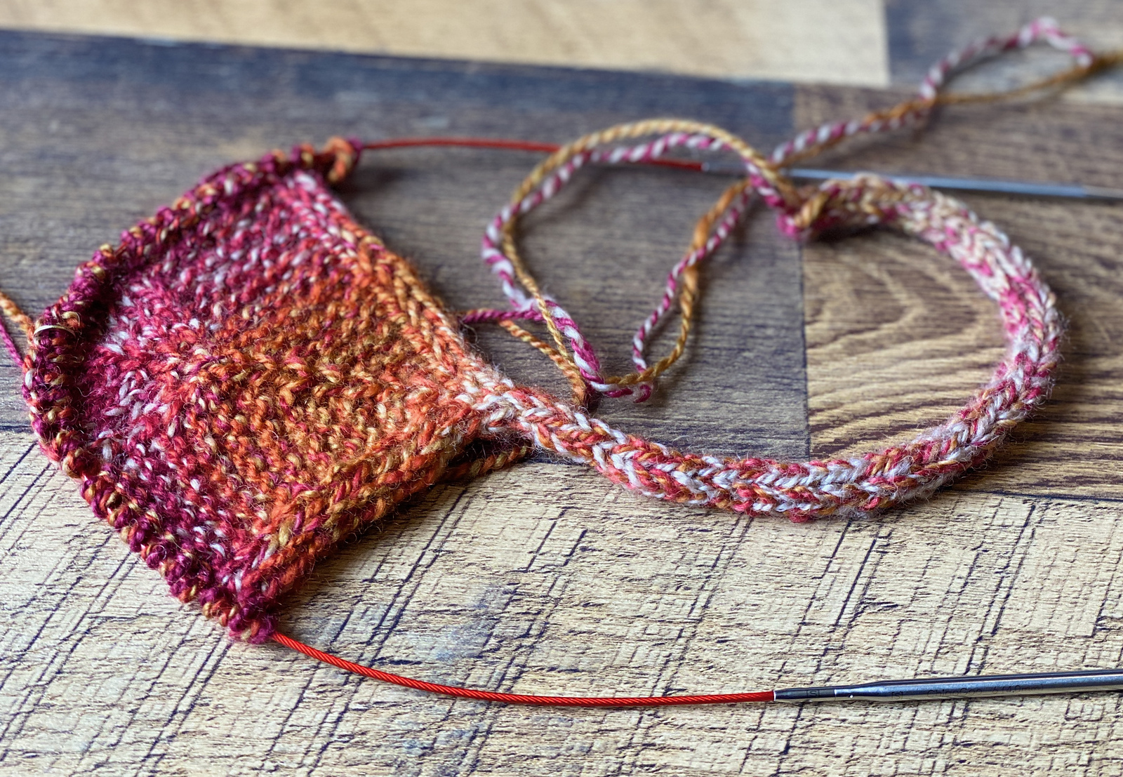 For the yarn, I chose my fiery En Fuego handspun (a Nest Fiber Studio colorway) that I spun in 2020. I’d been saving this skein for just the right project, and the yardage was perfect for Beloved.